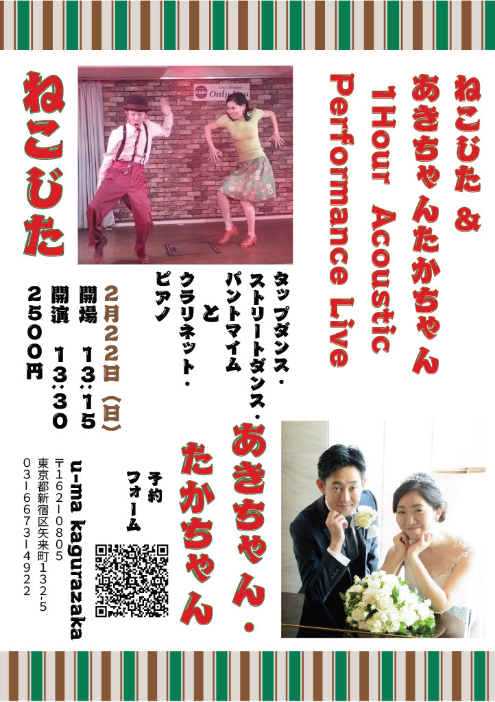 u-ma kagurazakaにて、『ねこじた&あきちゃんたかちゃん 1Hour Acoustic Performance Live』に出演しました